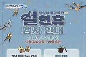 원스텝뉴스 이병희 기자 | 시흥시는 설 명절을 맞아 시민과 방문객이 뜻깊은 시간을 보낼 수 있도록 오는 2월 14일부터 18일까지 해양생태과학관에서 설 연휴 특별 행사를 운영한다. 해양생태과학관은 설날 당일인 2월 17일을 제외한 연휴 기간 정상 운영되며, 연휴 이후인 2월 19일은 휴관한다. 연휴 기간 방문객들은 해양 생태 전시 관람과 함께 명절 분위기를 느낄 수 있는 다양한 체험 프로그램을 즐길 수 있다. 특히 2월 14일부터 18일까지는 방문객 누구나 참여할 수 있는 특별 마술공연이 진행된다. 공연은 해양생태과학관 2층에서 오후 1시와 3시, 하루 2회 운영되며, 해양 전시 생물 관람과 교육 프로그램과 연계해 색다른 즐거움을 선사할 예정이다. 이와 함께 설 명절의 정취를 느낄 수 있는 전통 놀이 체험 공간도 마련된다. 해양생태과학관 3층 기획전시실에서는 윷놀이, 투호 던지기, 제기차기 등 설날을 대표하는 전통 놀이를 해양생태과학관 운영시간인 오전 10시부터 오후 6시까지 누구나 자유롭게 체험할 수 있도록 운영할 예정이다. 시 관계자는 “설날 당일을 제외한 연휴 기간 해양생태과학관을 정상 운영하