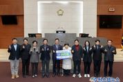 원스텝뉴스 이병희 기자 | 서울특별시 금천구의회는 ‘2025 서울시 구의원 한마음체육대회’에서 권역대항경기 준우승으로 받은 상금(온누리상품권 30만원)을 지역사회 나눔에 활용하며 따뜻한 연대를 실천했다. 금천구의회는 지난 18일, 볕바라기 사회적협동조합(장애인 공동생활 가정)에 상금을 전달하며 연말의 따뜻한 나눔에 동참했다. 이인식 의장은 “의원들이 함께 참여한 체육대회의 의미 있는 성과를 지역사회와 나눌 수 있어 더욱 뜻깊다”며, “금천구의회는 앞으로도 작은 실천이 큰 따뜻함으로 이어질 수 있도록 구민과 함께하는 나눔을 지속해 나가겠다”고 밝혔다.