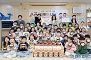 원스텝뉴스 이병희 기자 | 동절기를 맞아 지난 11월 27일 시립은계아란트리어린이집과 시립은계제일풍경채어린이집 아동들이 직접 담근 김장김치 총 100개(각 50개)를 시흥시북부노인복지관의 고령자복지주택 어르신들에게 전달하며, 지역사회 어르신을 위한 세대 간 따뜻한 나눔을 실천했다. 이번 김장 나눔은 어린이들이 겨울철 이웃 어르신을 생각하는 마음을 담아 김장 재료 버무림부터 포장까지 전 과정에 참여한 의미 있는 활동으로, 지역사회 내 1·3세대가 함께 만들어 가는 상생의 장으로 마련됐다. 복지관은 전달받은 김장김치를 겨울철 밑반찬 마련에 어려움을 겪는 고령자복지주택 어르신들에게 전했다. 김장김치를 전달받은 어르신들은 “우리를 생각하며 아이들이 직접 김치를 만들었다니 감동스럽다”, “정성이 담긴 김치라 더욱 맛있을 것 같다”라며 감사의 뜻을 전했다. 이병우 시흥시북부노인복지관장은 “어린이들의 작은 손길이 어르신들께 큰 온기와 희망으로 전해졌다”라며 “앞으로도 지역의 다양한 세대와 함께 복지공동체를 강화해 나가겠다”라고 말했다. 한편, 시흥시북부노인복지관은 지역 내 복지자원과 세대 간 연계를 기반으로 어