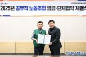 원스텝뉴스 이병희 기자 | 시흥시는 지난 11월 26일 시청 다슬방에서 교섭대표 노동조합인 전국민주연합노동조합 시흥지부와 2025년도 공무직 임금ㆍ단체협약을 체결했다. 올해 교섭은 지난 9월 10일 상견례를 시작으로 약 2개월간 총 7차례의 실무교섭을 통해 진행됐으며, 상호 입장을 조율하기 위한 세부 논의를 거쳐 임금 협약과 단체협약 내용이 확정됐다. 임금 및 단체협약에는 ▲2024년 임금 총액 대비 3% 인상 ▲민원 업무 수당 및 위험 근무수당 신설 ▲임금 테이블 통합(사무보조 직군과 영양사ㆍ의료급여 등 전문ㆍ단순 노무 직군을 ‘노무원’으로 통합) ▲경력 인정 기준 신설 ▲휴직 사유 신설 등 다양한 개선 사항이 포함됐다. 이번 합의는 공무직 근로자의 복리 증진과 근무 여건 향상을 위해 노사 양측이 지속적으로 의견을 조율하며 마련한 것으로, 안정적이고 효율적인 근무 환경을 만드는 데 중요한 기반이 될 것으로 기대된다. 김기범 전국민주연합노동조합 시흥지부장은 “같은 시흥시 직원으로서 상생의 자세로 한 방향을 바라볼 수 있도록 협력해 준 시흥시에 감사드린다”라며, “이번 협약을 통해 조합원들이 더 안정