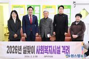 원스텝뉴스 이병희 기자 | 대덕구의회는 2일 민족 고유 명절 설을 앞두고 지역에 있는 사회복지시설을 격려 방문했다. 전석광 의장을 비롯한 양영자․김기흥․박효서 의원과 의회사무과 직원들은 이날 노인요양시설인 우리쉼터노인요양원과 장애인단기거주시설 가온누리를 각각 찾았다. 구의회는 이들 시설에 위문품(온누리상품권)을 전달하는 한편, 입소자들과 덕담을 나누고 안부를 살피는 등 명절 인사를 했다. 또 시설 종사자들로부터 사회복지시설에 대한 지원 방안 등 애로사항을 경청했다. 전석광 의장은 “설 명절을 앞두고 지역의 어르신들과 장애인 가족들께 작은 정성이지만 따뜻한 온기를 전하고자 했다”며 “앞으로도 우리 의회는 모두가 체감할 수 있는 촘촘한 복지 실현에 최선을 다하겠다”고 말했다.