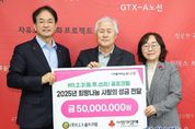 원스텝뉴스 이병희 기자 | 고양특례시는 24일, 고양시 덕양구 창릉동에 소재한 1.2.3(원투쓰리) 골프클럽에서 어려운 이웃을 위한 사랑의 성금 5천만 원을 전달했다고 밝혔다. 2021년 고양시 1호 나눔명문기업으로 가입한 1.2.3 골프클럽은 매년 어려운 이웃들이 따뜻한 겨울을 보낼 수 있도록 2000년부터 26년 동안 총 12억 6천 5백 5십 4만 2천 원의 성금을 기탁하면서 나눔문화 확산을 꾸준히 실천하고 있다. ‘나눔명문기업’은 1억 원 이상을 기부하거나 3년 이내 납부를 약정한 기업이 참여하는 고액 기업기부자 모임으로, 선한 영향력으로 우리사회의 나눔문화 확산에 기여하고 있다. 올해 1.2.3 골프클럽은 평소 이웃사랑을 실천하며 지역사회에 나눔문화을 확산하는 데 크게 기여한 공로를 인정받아 경기도로부터 유공 표창도 받았다. 이번에 기탁된 사랑의 성금 5천만 원은 경기 사회복지공동모금회를 통해 골프장 인근 경로당 및 복지지설과 관내 홀몸 어르신 등 추운 겨울을 보내는 소외계층에게 전달될 예정이다. 1.2.3 골프클럽 한제걸 대표이사는 “땅의 지혜를 가진 뱀의 해가 저물고, 땅을