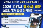 원스텝뉴스 이병희 기자 | 고양산업진흥원이 웹콘텐츠 산업을 이끌어갈 스토리 전문 인재 발굴을 위한 ‘2026 고양시 웹소설·웹툰 스토리작가 양성 아카데미’ 교육생을 모집한다. 이번 교육과정은 진흥원과 스토리 콘텐츠 분야 전문가들로 구성된 한국만화스토리협회와 협업해, 고양시 작가 지망생들의 데뷔를 목표로 이도경, 김양수, 송향희 등 현역 작가들이 다양한 창작 노하우를 공유할 예정이다. 스토리 작가 데뷔에 관심 있는 고양시민, 고양시 소재 대학교 재학생·졸업생을 대상으로 하며, 오는 3월 19일까지 이메일로 신청하면 된다. 교육은 4월 10일부터 매주 금요일 총 10회에 걸쳐 진행되며, 자세한 내용은 포스터 내 QR코드 또는 진흥원 누리집에서 확인할 수 있다. 진흥원은 웹툰·웹소설 등 부가가치가 큰 웹콘텐츠 IP를 발굴하고, 우수한 창작 인재 양성을 위한 교육 사업을 추진하고 있다. 특히 ‘IP융복합 콘텐츠 클러스터’조성을 통해 고양시 특화 웹콘텐츠 산업을 지속적으로 육성해 나갈 계획이다.