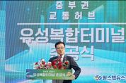 원스텝뉴스 이병희 기자 | 대전시의회 조원휘 의장은 29일 유성복합터미널 건립사업 준공식에 참석해 준공을 축하하며, 지역이 교통과 경제 관문으로 거듭나길 기원했다. 이날 준공식은 지역을 대표하는 단체·기관장, 시민 등 500여 명이 참석한 가운데 기념식수를 시작으로 사업 경과보고, 주요내빈 축사, 시민 인터뷰 영상, 퍼포먼스 순으로 진행됐고, 본 행사를 마친 뒤에는 터미널 내부 순시로 이어졌다. 조원휘 의장은 “유성복합터미널 건립은 네 차례나 무산되는 등 10여 년간 표류했지만, 민선 8기에 공영개발로 전환하며 속도감 있는 추진과 민·관 협력이 더해져 단 3년 만에 완성됐다”면서, “내년 1월부터 32개 노선과 도시철도, BRT, 유성IC를 잇는 뛰어난 연계성으로 충청권 교통의 핵심 거점이 될 것이며, 앞으로 터미널이 시민의 일상과 지역경제에 활력을 더하고 대전 서북부의 미래 성장 축을 여는 힘이 될 수 있도록 대전시의회는 정책적 관심과 지원을 아끼지 않겠다”고 말했다.