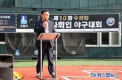 원스텝뉴스 이병희 기자 | 수원특례시의회는 10월 19일 황구지천야구장에서 열린 ‘제10회 수원컵 전국 사회인 야구대회 개회식’에 참석해 선수들을 격려했다. 이번 대회는 경기일보가 주최하고 수원시야구소프트볼협회가 주관했으며, 전국 사회인 44개 팀이 참가해 뜨거운 열정 속에 경기를 펼쳤다. 이날 행사에는 이재식 의장, 김정렬 부의장을 비롯한 오세철 예산결산특별위원장, 김동은 의원이 함께해 선수단을 응원하며, 전국 각지에서 모인 야구 동호인들과 교류의 시간을 가졌다. 이재식 의장은 축사에서 “직장과 가정을 오가며 바쁜 일상 속에서도 야구에 대한 열정으로 최선을 다하는 선수 여러분께 진심 어린 박수를 보낸다”며 “이번 대회가 지역과 세대를 넘어 우정을 나누는 축제가 되길 바란다.”고 말했다.