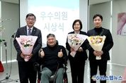 원스텝뉴스 이병희 기자 | 성동구의회 박성근, 전종균, 이현숙 의원이 지난 3월 6일 열린 성동느티나무장애인자립생활센터 신년회 및 정기총회에서 장애인 복지 향상과 자립생활 기반 확대에 기여한 공로를 인정받아 표창패를 수상했다. 느티나무장애인자립생활센터는 장애인이 지역사회에서 독립된 개인으로서 자신의 삶을 스스로 선택하고 결정할 수 있도록 지원하는 곳으로, 성동구의회 의원들의 2024~2025년도 의정활동을 모니터링해 우수의원을 선정했다고 밝혔다. 이현숙 의원이 최우수상을, 박성근 의원과 전종균 의원이 우수상을 각각 수상했으며, 세 명의 의원들은 적극적으로 장애인의 목소리를 대변하고 지속적인 조례 발의를 통해 장애인 제도 개선에 힘써왔다는 평가를 받았다. 박성근 의원은 '성동구 발달장애인 실종 예방 지원에 관한 조례', '성동구 장애인 문화예술 활동 지원 조례' 제정을 통해 발달장애인의 안전과 복지증진을 도모하고, 장애인의 문화 향유 기회 확대를 위한 제도적 틀을 마련했다. 전종균 의원은 장애인에 대한 따뜻한 시선과 애정을 바탕으로 관련 정책과 현안에 높은 관심을 갖고, 지역사회 내 장애인의 자립
