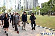 원스텝뉴스 이병희 기자 | 이상일 용인특례시장은 23일 처인구 모현읍 힐스테이트 몬테로이 단지를 방문해 입주민들과 ‘공동주택 민생현장 소통버스킹’을 1시간 50분 가량 진행하며 시민들의 의견을 듣고 답변을 하는 등 소통의 시간을 가졌다. 이날 행사는 지난 6월 고림동 힐스테이트 둔전역, 7월 힐스테이트 고진역 1·2단지, 8월 마북동 e편한세상 구성역 플랫폼시티에 이어 네 번째로 마련된 자리다. 이 시장은 이날 이 아파트 1,2,3단지를 입주민들과 함께 둘러보고 난 뒤 입주민 50여 명과 입주자대표회의 관계자들과 간담회를 했다. 이상일 시장은 “지난 2023년 공사가 한창이던 시기에 이곳읗 찾아 당시엔 입주예정자들이었던 분들의 이야기를 듣고, 시공사와 시행사에 입주예정자들의 의견을 반영해 달라고 한 바 있다”며 “그간 시가 여러분의 입장을 관철하기 위해 많은 노력을 기울인 결과 이 아파트가 살기 좋다는 이야기도 나오고 있지만 불편한 점이나 하자가 아직 남아 있고, 교통이나 교육면에서 미흡한 것들도 많은 만큼 주민 여러분의 의견을 귀담아 듣고 도와드릴 수 있는 있는 것은 도와 드리기 위해 이렇게 방문했다”고 말