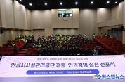 원스텝뉴스 이병희 기자 | 안성시시설관리공단은 2026년을 맞아 지난 2월 4일 안성시평생학습관에서 청렴·인권경영 실천 선포식을 개최했다고 밝혔다. 이번 선포식은 공정하고 투명한 조직 운영과 인권 존중 경영 실천 의지를 대·내외에 선언하기 위해 마련됐으며, 경영진과 전 임직원이 함께 참여해 더욱 의미를 더했다. 또한, 안성시시설관리공단은 인권경영시스템 5년 연속 인증을 달성하는 등 청렴·윤리 경영과 인권경영 정착을 위해 지속적인 노력을 기울여 왔으며, 이번 선포식을 통해 청렴과 인권존중을 기반으로 한 경영문화 확립을 최우선 과제로 삼고, 신뢰받는 공기업으로 자리매김하겠다는 의지를 대·내외적으로 선언했다. 이정찬 이사장은 청렴과 인권을 핵심 가치로 삼아, 공정하고 투명한 조직문화를 조성하고, 인권을 최우선으로 하는 경영 활동이 이루어 질 수 있도록 전 임직원이 함께 노력해 나아가겠다고 밝혔다.