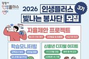 원스텝뉴스 이병희 기자 | 광명시 인생플러스센터가 ‘2026년 인생플러스 빛나는 봉사단’ 제3기 봉사자 40명을 2월 23일부터 3월 11일까지 모집한다. ‘인생플러스 빛나는 봉사단’은 40~64세 광명시 중장년이 지닌 지식과 역량을 평생학습 자원으로 확장해 지역공동체에 필요한 변화를 함께 만들어가는 ‘재능활용 학습실천’ 자원봉사 활동이다. 지난 1‧2기 활동에는 총 50명의 봉사자가 참여해 ▲아동 학습보조 및 책놀이 ▲1:1 디지털 코칭 ‘신중년 디지털 아지트’ ▲어르신 아로마 향기테라피 ▲중장년 드론 조종 체험 등 다양한 활동을 펼쳤다. 이들은 총 413회, 누적 1천358시간에 걸친 봉사활동으로 지역사회에 활력을 불어넣었다는 평가를 받았다. 이번 3기 모집 분야는 크게 현장지원형(10명)과 프로젝트형(30명)으로 나뉜다. 현장지원형은 센터 프로그램 운영과 행사 안내를 돕는 ‘인생플러스 서포터즈’와 교육강사 보조 및 모니터링 일지를 작성하는 ‘학습 모니터링’으로 운영한다. 프로젝트형은 ‘신중년 디지털 아지트(1:1 코칭)’, ‘초등학생 책 낭독놀이’를 비롯해 봉사자가 직접 프로그램을