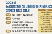 원스텝뉴스 이병희 기자 | 안양시가 1일부터 12일까지 건강하고 활기찬 노후를 위한 ‘2026년 노인일자리 및 사회활동 지원사업’의 참여자 4,998명을 모집한다. 참여자 규모는 유형별로 ▲노인공익활동 3,155명 ▲노인역량활용 1,106명 ▲공동체사업단 574명 ▲취업지원 163명 등이다. 노인일자리사업의 수행기관은 ▲안양시노인종합복지관 ▲비산노인종합복지관 ▲안양시니어클럽 ▲만안·동안노인지회 ▲경기실버포럼 ▲(사)위니버스 ▲시니어복지사회적협동조합 ▲만안구청 ▲동안구청 등 10곳이며, 참여자는 수행기관에서 추진하는 다양한 일자리·사회활동에 참여하게 된다. 신청 자격은 공고일(11월 27일) 기준 안양시에 주민등록이 되어 있는 어르신이다. 세부 기준은 ▲노인공익활동은 65세 이상 기초연금·직역연금 수급자(배우자 포함) ▲노인역량활용은 65세 이상(일부 유형은 60세 이상) ▲공동체사업·취업지원은 60세 이상이다. 다만, 생계급여 수급자(취업지원 제외), 건강보험 직장가입자, 장기요양등급자 등 일부 대상자는 신청이 제한된다. 희망자는 신분증과 주민등록등본 등을 지참하고 해당 수행기관 또는