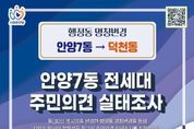 원스텝뉴스 이병희 기자 | 행정동 명칭 변경 사업을 추진 중인 안양시가 만안구 안양7동의 행정동 명칭 변경을 위해 올해 12월 1일부터 내년 1월 31일까지 해당 동 전 세대를 대상으로 주민의견 실태조사를 실시한다고 1일 밝혔다. 이번 주민의견 실태조사는 안양7동의 행정동 명칭을 ‘덕천동’으로 변경하는 것에 대한 찬반 의견 조사다. 안양7동에 거주하는 전체 세대 중 60% 이상이 참여하고, 참여 세대의 과반수가 찬성할 경우 시는 명칭 변경을 추진할 예정이다. 조사방법은 올해 12월 1일부터 2026년 1월 31일까지 시 홈페이지를 통해 비대면 조사를 진행하고, 12월 18일부터 2026년 1월 31일까지 안양7동 행정동명칭변경추진위원회가 각 세대 방문조사를 병행하게 된다. 덕천(德泉)동은 어린이들이 샘물 솟듯이 씩씩하게 자라서 나라에 큰 일꾼이 되기를 바라는 뜻으로, 큰 덕(德)에 샘 천(泉)을 취해 붙여진 옛 지명이다. 시는 이에 앞서 지난 9월 12일부터 9월 30일까지 안양7동 주민들을 대상으로 행정동 명칭에 대한 선호도 조사를 진행했고, 조사에 참여한 646세대의 주민 중 52.