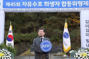 원스텝뉴스 이병희 기자 | 이상일 용인특례시장은 6일 처인구 양지면 대대리 ‘자유수호희생자위령탑’에서 열린 제45회 자유수호희생자 합동위령제에 참석해 희생자들을 추모했다. 이날 행사엔 이상일 시장을 비롯한 박창무 한국자유총연맹 용인시지회장 등 지역 내 단체 관계자와 시민 50여 명이 참석했다. 행사는 희생자를 기리기 위한 추도 의식, 추념사·추도사, 조가 연주와 제창, 진혼무, 헌화 순으로 진행됐다. 이상일 시장은 추도사에서 “고대부터 자유는 인간에게 가장 중요한 가치로 자유를 얻지 못하면 우리는 평등해질 수가 없다”며 “선배 세대들이 목숨을 바치면서 자유를 지켜낸 모습만 봐도 자유는 그냥 얻어진 것이 아니다”라고 강조했다. 이 시장은 “우리가 매년 위령제를 지내는 것은 1990년 9월 21일 희생당하신 분들의 고귀한 넋을 우리가 면면히 잘 이어받아 선배 세대가 소중하게 지킨 이 나라를 더욱더 발전시켜 후배 세대들에게 물려주기 위함이라고 생각한다”며 “호국영령의 넋이 하늘나라에서도 늘 평안을 누리시길 기원드린다”고 했다. 자유수호희생자위령탑은 1950년 9월 21일 용인·화성·수원 등지에서 끌려와