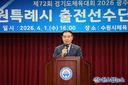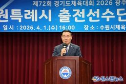 원스텝뉴스 이병희 기자 | 수원특례시의회는 1일 수원시체육회관 2층 대회의실에서 열린 '제72회 경기도체육대회 수원시 선수단 결단식'에 참석해 선수단을 격려하고 선전을 기원했다. 이번 결단식은 오는 4월 16일부터 18일까지 광주시에서 열리는 제72회 경기도체육대회를 앞두고 수원시 선수단의 각오를 다지고 사기를 높이기 위해 마련됐다. 이날 행사에는 수원특례시의회 의장을 비롯해 수원시장, 수원시체육회장, 체육회 임원, 선수단 등 약 180여 명이 참석했으며, 출전보고와 단기 수여, 선수대표 선서 등이 진행됐다. 특히 수원시는 총 473명의 선수단이 출전해 27개 종목에서 기량을 겨룰 예정이다. 수원특례시의회는 결단식에 참석해 선수단의 사기를 북돋고, 시민과 함께하는 체육도시 수원의 위상을 높이기 위한 응원의 뜻을 함께했다. 이재식 의장은 축사를 통해 “그동안 흘린 땀과 노력이 결실을 맺을 시간이 다가왔다”며 “수원 선수단이 최고의 기량과 스포츠 정신으로 대회에 임해 시민들에게 큰 감동을 전해주길 바란다”고 말했다. 이어 “결과도 중요하지만 정정당당한 경기와 서로를 믿는 팀워크가 더욱 빛날 것”이라며