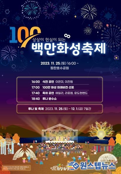 원스텝뉴스 천수호 기자 | 화성시가 오는 25일 동탄호수공원에서 ‘상상이 현실이 되는 백만화성축제, 100만 화성 미래비전 선포식’을 개최한다.
