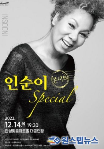 원스텝뉴스 천수호 기자 | 안성맞춤아트홀은 오는 12월 14일 저녁 7시 30분, 안성맞춤아트홀 대공연장에서 국민 디바 인순이의 스페셜 콘서트를 개최한다.