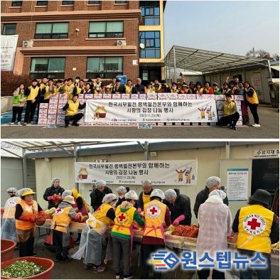 원스텝뉴스 천수호 기자 | 평택시 포승읍 적십자봉사회는 23일 포승읍 행정복지센터에서 지역 내 취약계층을 위한 ‘사랑의 김장 나눔 행사’를 진행했다.