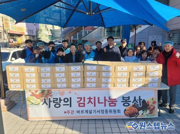 이날 행사는 바르게살기운동 서정동위원회가 김치 100박스(500㎏)를 관내 경로당 14개소, 지역아동센터 4개소 및 소외이웃 30여 가구에 전달했다.