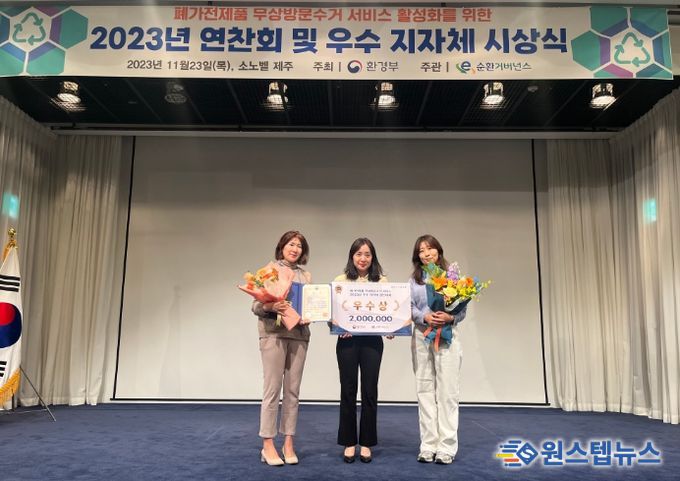 원스텝뉴스 천수호 기자 | 용인특례시는 환경부가 주최하고 e-순환거버넌스(구 한국전자제품자원순환공제조합)가 주관하는 ‘2023년 폐가전제품 무상방문수거사업 경진대회’에서 우수상을 수상했다고 28일 밝혔다.