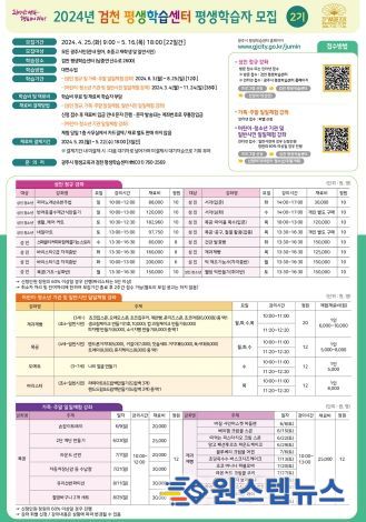 원스텝뉴스 천규영 기자 | 광주시는 오는 25일부터 5월 16일까지 ‘2024년 검천 평생학습센터 프로그램 평생학습자 2기’를 선착순 모집한다고 22일 밝혔다.