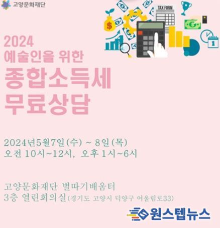 원스텝뉴스 천규영 기자 | 고양문화재단이 ‘어울림누리 별따기 배움터’에서 고양시 예술인을 위한 ‘종합소득세 일대일 무료 상담창구’를 운영한다고 밝혔다.