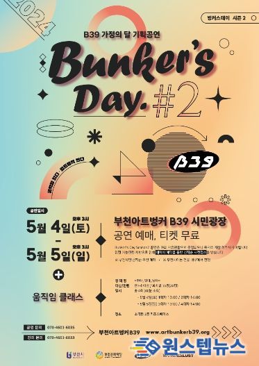 부천문화재단은 재단에서 운영하는 부천아트벙커B39에서 5월 4일~5일 이틀간 ‘벙커스데이 시즌 2(Bunker’s Day Season 2)’ 행사를 개최한다.