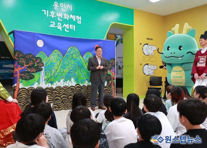 원스텝뉴스 이병희 기자 | 용인특례시는 19일 용인성산초등학교 학생들이 제54주년 지구의 날(4월 22일)을 기념해 열리는 기후변화주간 행사에서 ‘어린이 기후어사대’를 체험하며 탄소중립을 익혔다고 밝혔다.