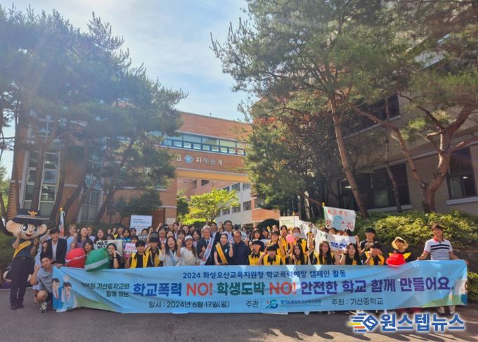 이번 캠페인은 기산중학교 학생자치회가 중심이 되어 등굣길 아침맞이 캠페인 활동을 실시했고, 기산 중학교 교사, 학부모, 화성오산교육지원청, 지역주민 등 교육공동체가 함께 참여하여 학교폭력·학생도박 예방 문화를 전파했다.