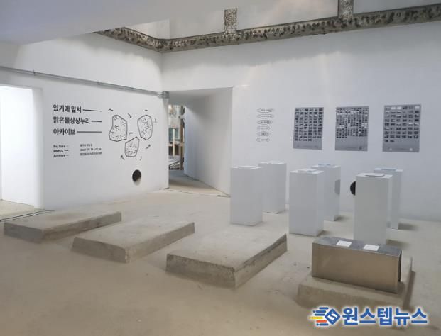 ‘비, 포어’의 완성과 함께 맑은물상상누리에서는 본 공간이 ‘있기에 앞서’ 어떤 이야기들이 있었는지 조망하는 전시를 선보인다. 영국 왕립예술학교에서 수학하고 현재 디자인스튜디오 ‘주의집중’을 운영하며 활발히 활동 중인 홍주희 디자이너의 기획 아래 함께 만든 ‘있기에 앞서 : 맑은물상상누리 아카이브’ 전시회가 그것이다.