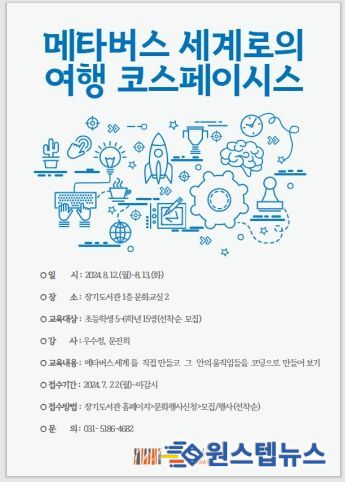 원스텝뉴스 천규영 기자 | 김포시 장기도서관은 8월 12~13일 오전 10시에 초등학생 5~6학년을 대상으로 '메타버스 세계로의 여행 코스페이시스'를 운영한다.