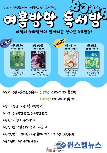 원스텝뉴스 천규영 기자 | 고양특례시 행신도서관이 초등학교 3~6학년을 대상으로 한 독서교실 ‘여름방학 독서밤(Bomb)’을 8월 6일부터 운영한다고 밝혔다.