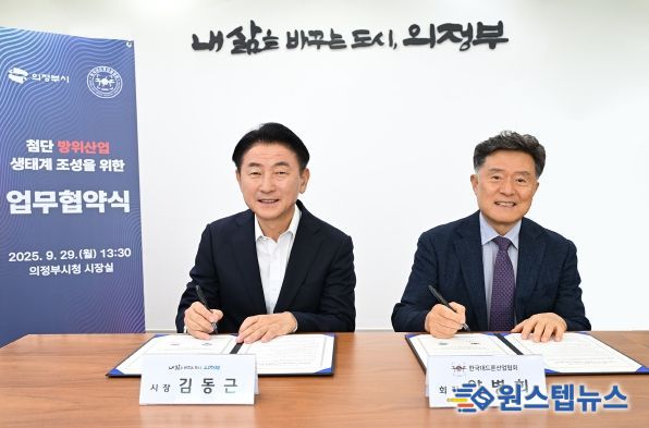 원스텝뉴스 이병희 기자 | 의정부시는 9월 29일 (사)한국대드론산업협회와 ‘첨단 방위산업 생태계 조성을 위한 업무협약’을 체결했다.
