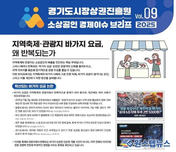 원스텝뉴스 이병희 기자 | 경기도시장상권진흥원은 지역축제와 관광지에서 반복되는 ‘바가지 요금’ 실태를 분석한 「경기도 소상공인 경제 이슈 브리프 VOL.09」을 30일 발간했다고 밝혔다.
