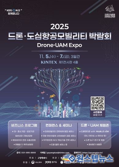 원스텝뉴스 이병희 기자 | 고양특례시는 오는 11월 5일부터 7일까지 킨텍스 제1전시장에서 열리는 ‘2025 드론·도심항공모빌리티 박람회’에서 산업 전문가들과 함께 드론·UAM 산업의 발전 방향과 최신 기술 동향을 논의하는 전문 컨퍼런스를 개최한다고 밝혔다.