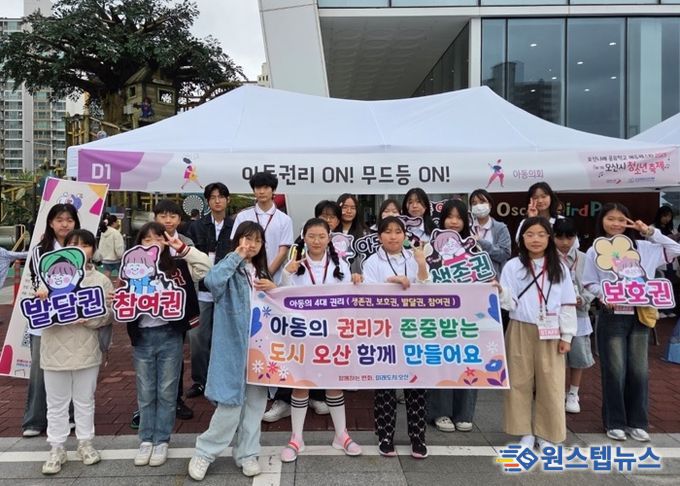 원스텝뉴스 이병희 기자 | 오산시는 지난 18일 오산시청 광장에서 열린 ‘제7회 오산시 청소년 축제’ 현장에서 오산시 아동의회 의원들이 ‘아동 권리, 함께 지켜요’라는 주제로 아동 권리 캠페인 활동 및 아동 권리 증진을 위한 홍보 부스를 운영했다고 밝혔다.