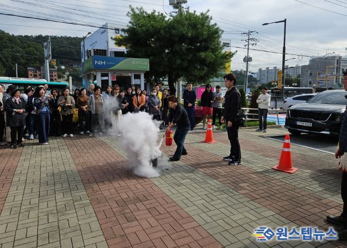 훈련은 화재 경보 발령을 시작으로 △화재 신고 △상황 전파 △대피 유도 △화재 진압 순으로 이뤄졌으며 소화기 사용법 실습도 함께 진행됐다.