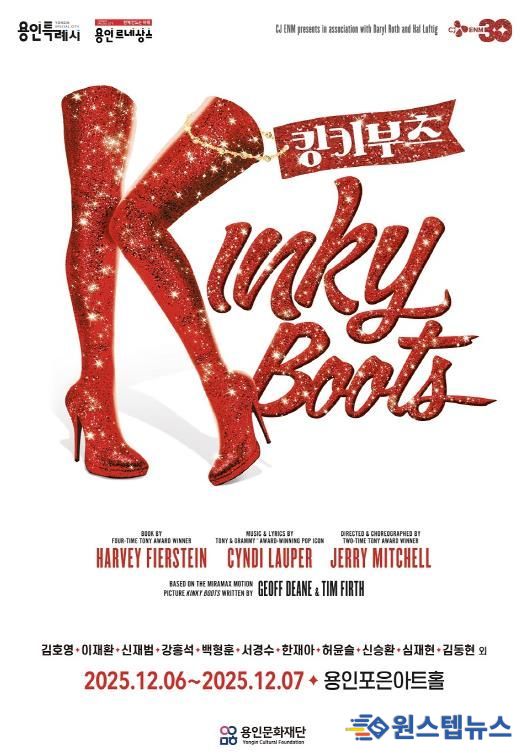 원스텝뉴스 천규영 기자 | 용인문화재단은 오는 12월 6일부터 7일까지 용인포은아트홀에서 뮤지컬 ‘킹키부츠’를 선보인다. 이번 공연은 양일간 오후 2시와 7시, 총 4회 진행되며, 관람 연령은 만 8세 이상으로 미취학 아동은 입장이 불가하다.