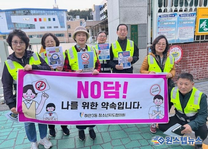 원스텝뉴스 이병희 기자 | 광명시 하안3동 청소년지도협의회는 지난 20일 가림초등학교, 가림중학교, 하안사거리 등 관내 주요 지역에서 청소년 대상 금연 캠페인을 실시했다.