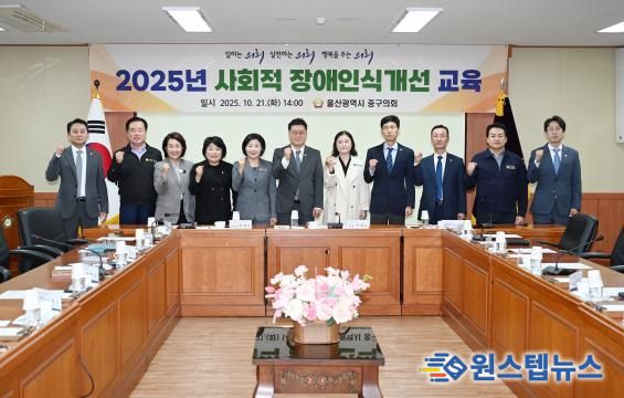원스텝뉴스 이병희 기자 | 울산 중구의회는 21일 오후 2시 의원회의실에서 ‘2025년 사회적 장애인식개선 교육’을 진행했다.