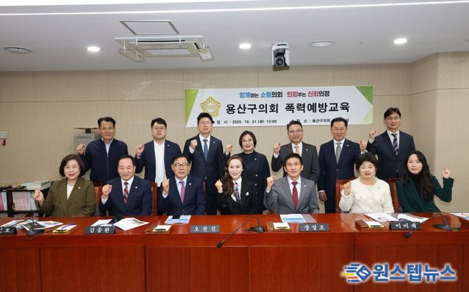 원스텝뉴스 이병희 기자 | 용산구의회는 10월 21일 의원 및 사무국 직원을 대상으로 ‘4대 폭력 예방교육’을 실시했다. 이번 교육은 성희롱·성폭력·성매매·가정폭력 등 4대 폭력에 대한 올바른 인식 확립과 성평등한 조직문화 조성을 위해 마련됐다.