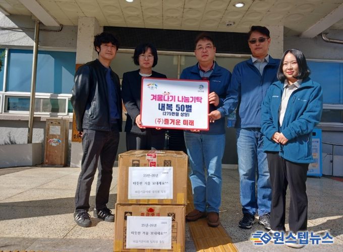 원스텝뉴스 이병희 기자 | ㈜즐거운 미래에서 10월 22일에 장호원읍행정복지센터에 따뜻한 겨울나기를 위한 내복 50벌(275만원 상당)을 전달했다.