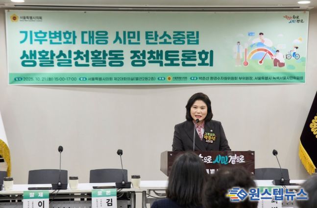 원스텝뉴스 이병희 기자 | 서울특별시의회가 주최하고 서울특별시의회 환경수자원위원회 박춘선 부위원장(강동3, 국민의힘)과 서울특별시 녹색서울시민위원회가 공동 주관한 '기후변화 대응 시민 탄소중립 생활실천활동 정책토론회'가 10월 21일 오후 3시 서울시의회 제2대회의실에서 성황리에 개최됐다.