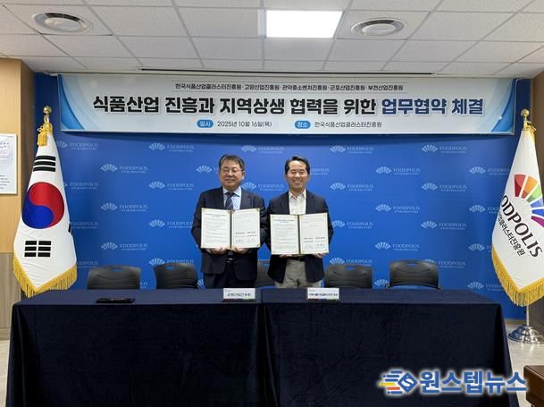 원스텝뉴스 이병희 기자 | 군포산업진흥원은 10월 16일 한국식품산업클러스터진흥원과 군포시 식품산업 발전과 식품 제조·가공 기업 육성과 경쟁력 강화를 위한 업무협약(MOU)을 체결했다고 밝혔다.