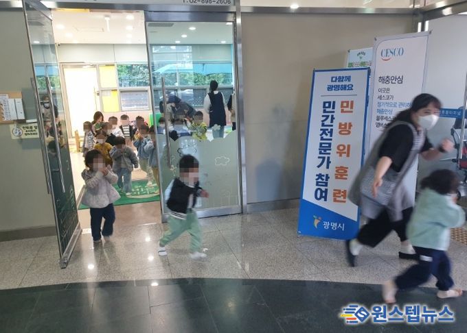 원스텝뉴스 이병희 기자 | 광명시 일직동 행정복지센터는 23일 영유아와 어린이집 교사를 대상으로 화재 대비 훈련을 실시했다.