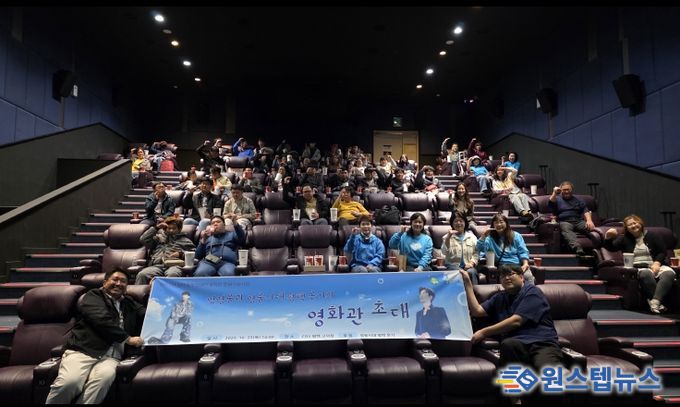 원스텝뉴스 이병희 기자 | 평택북부장애인복지관은 가수 임영웅 팬클럽 ‘영웅시대 평택 온기’와 함께 10월 23일(목) 14:00부터 17:00까지 CGV평택고덕점에서 평소 영화 관람이 어려운 평택시 장애인 50명을 초청하여 함께 영화를 보는 문화 행사 ‘임영웅과 온기의 영화관 초대’ 행사를 진행 했습니다.