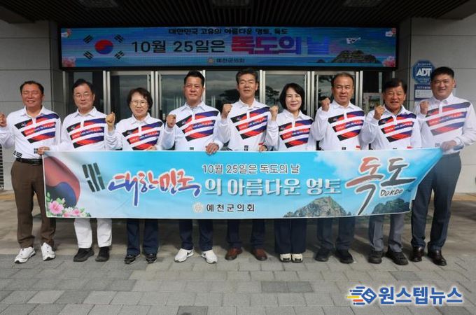 원스텝뉴스 이병희 기자 | 예천군의회는 24일, 독도의 날을 맞아 군의회 전정에서 의원과 의회사무과 직원이 참가한 가운데 독도사랑 캠페인을 가졌다.