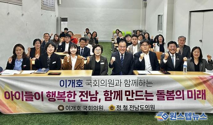 이날 간담회에는 이개호 국회의원과 정철ㆍ박현숙 도의원을 비롯해 전남지역아동센터연합회 회장 및 22개 시ㆍ군 센터장, 전남도 아동복지팀장, 전남도교육청 늘봄교육팀장 및 관계자 등 50여 명이 참석했다.