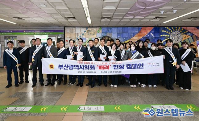 원스텝뉴스 이병희 기자 | 부산광역시의회는 10월 29일 오늘 오전 8시, 도시철도 사상역 역사 및 야외 열린공간에서‘부산광역시의회 공익캠페인 '배려〉’ 현장 캠페인과 함께‘찾아가는 현장소통’제2회 행사를 통합 개최했다.