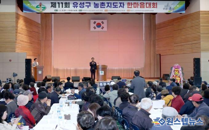 원스텝뉴스 이병희 기자 | 대전시의회 조원휘 의장은 29일 농업기술센터(유성구 교촌동)에서 개최된 제11회 유성구 농촌지도자 한마음대회에 참석해 농업 발전을 위한 노고에 감사를 표하고, 이번 대회가 단합과 상생의 계기가 되길 성원했다.