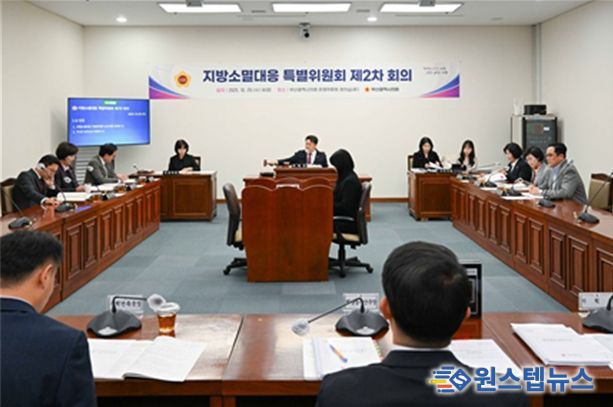 원스텝뉴스 이병희 기자 | 부산광역시의회 지방소멸대응 특별위원회는 2025년 10월 29일 운영위원회 회의실에서 제2차 회의를 개최했다. 이번 회의에서는 ▲지방소멸대응 특별위원회 운영계획서 채택 ▲부산시 주요사업 추진상황 업무보고 청취의 건을 상정하여, 부산시 지방소멸 대응 정책 추진 현황을 점검하고 향후 활동 방향을 논의했다.