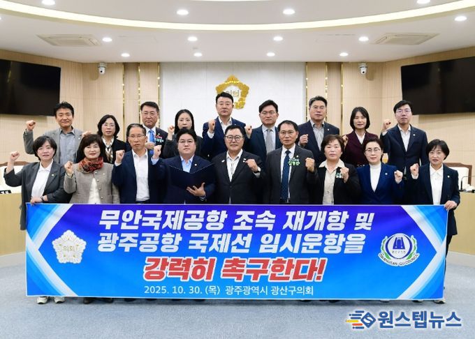 원스텝뉴스 이병희 기자 | 지난해 12월 제주항공 여객기 사고 이후 무안국제공항이 10개월째 운영이 중단되면서 호남권 주민들의 이동권 침해와 지역 경제 붕괴 문제가 심각한 가운데, 광산구의회가 정부와 관련 기관에 해결을 촉구하는 성명서를 발표했다.